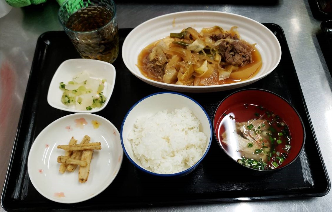 この日は牛すき煮にごぼうのから揚げ、鯛のお澄ましです。