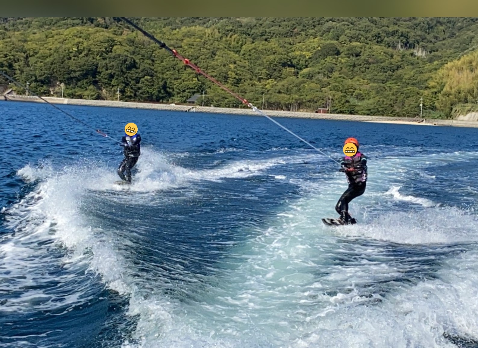 今回は、ウェイクボード初体験の社員も参加('ω')ノ
