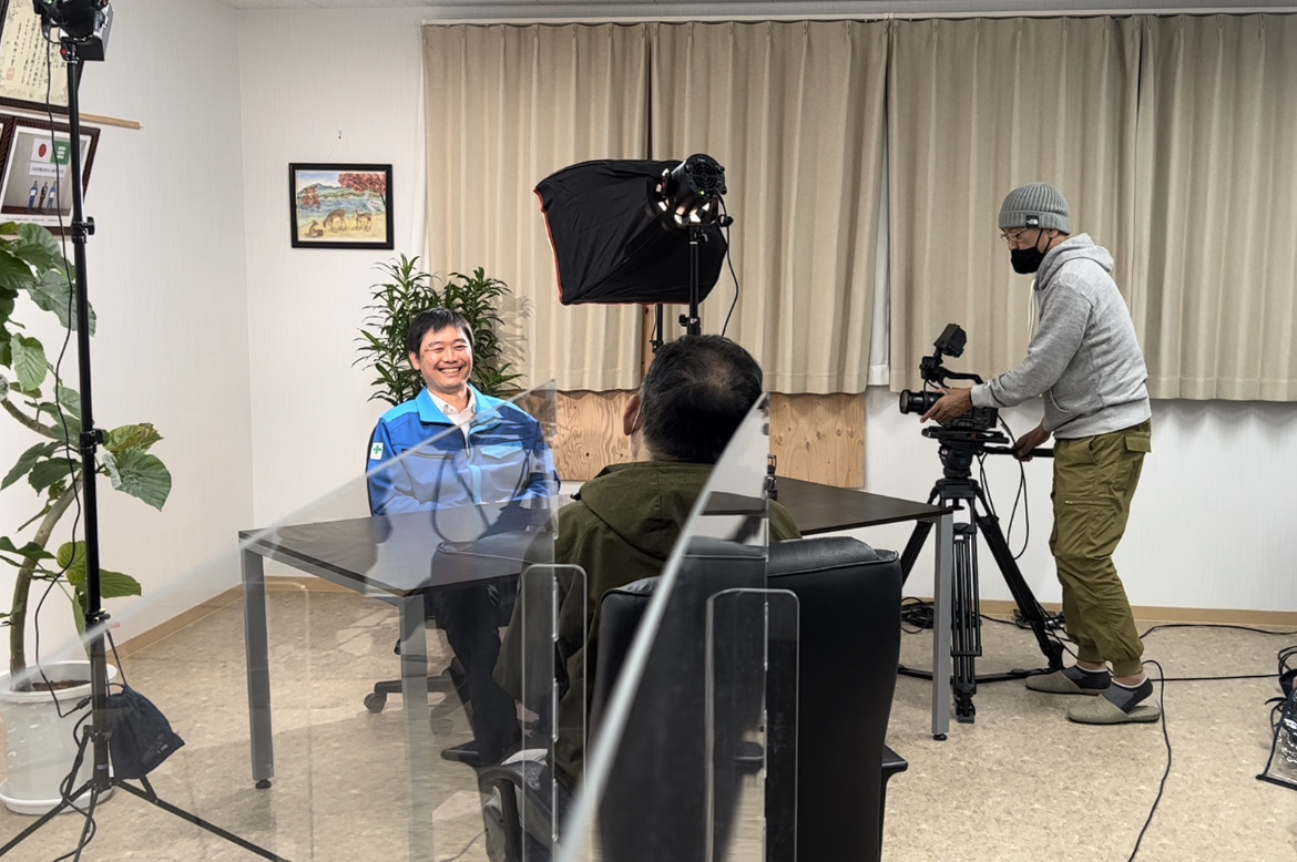 取材を受ける、洋翔建設㈱ 専務取締役 土井 福義