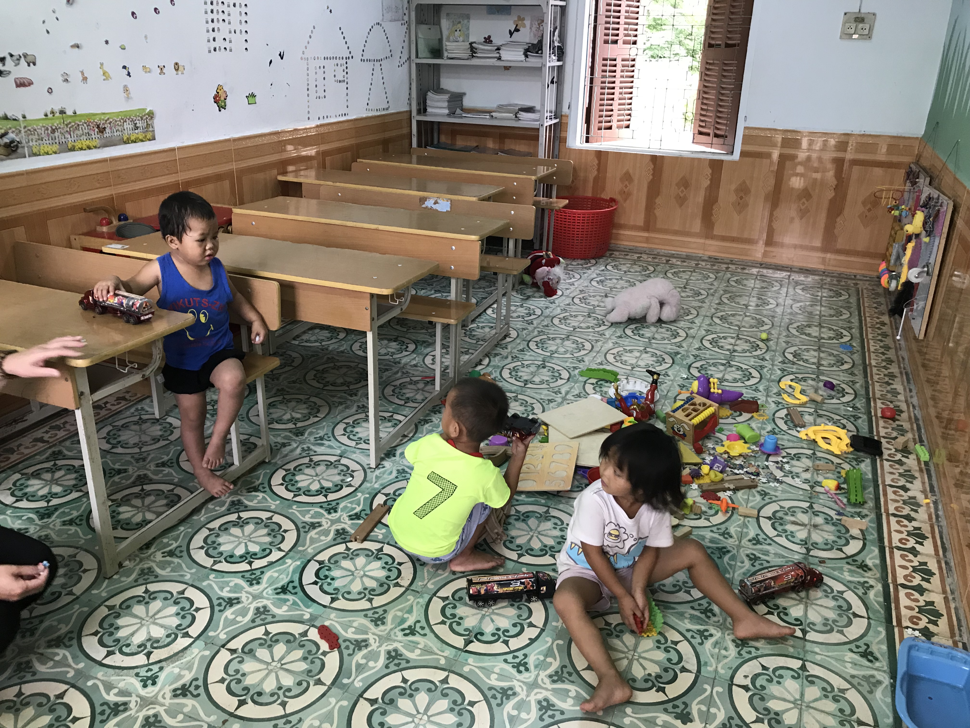 ちいさな子供達はおもちゃで遊んだりして過ごして