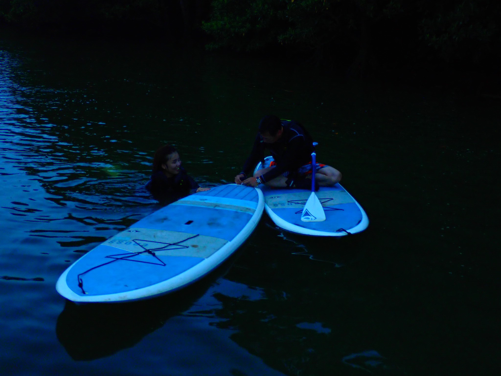 夜明け前に移動し、レクチャーを受けてSUP開始!